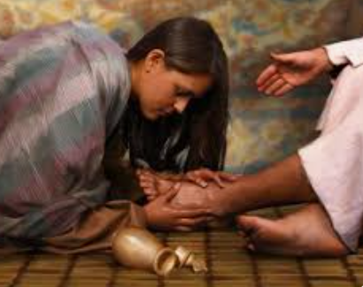 The Anointing Begins…. With Jesus at table, Mary commences her anointing. With her costly oil, Mary ministers with all liberality. John states, “Then Mary took about a pint of pure nard, an expensive perfume: she poured it on Jesus’ feet and wiped his feet with her hair.” Jn. 12:3 Mary’s ministry centers exclusively on the Lord and His needs, forming a firsthand encounter from her heart to His. There is a focus and continuity from the time Mary reaches the place of Jesus, until the anointing is completed. He is the sole object of her desire, and it is as natural for her to stay in this undivided state of devotion now, as it earlier had been for her to sit at the listening post of his feet.